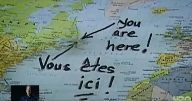 居民在地图上用英法双语标出甘德的位置