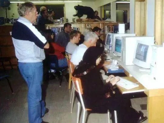 镇上设了公用电脑和电话,全部免费给人们使用。