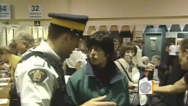 9月12日电视上开始转播遇难者默哀仪式,甘德镇9000多名加拿大居民,几千名外国乘客停下手边的事情,一起加入悼念。
