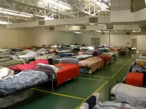 居民们把家里的睡袋,枕头,多余的被子和靠垫全部带去了离家最近的避难所。有些人还带来了婴儿床。