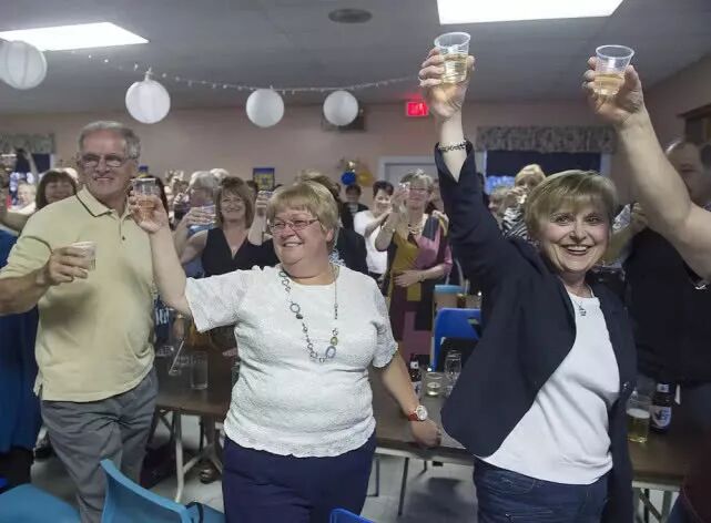 市政厅的议事厅,周边城镇的所有高中小镇的居民们抱着毯子在门口等着他们。