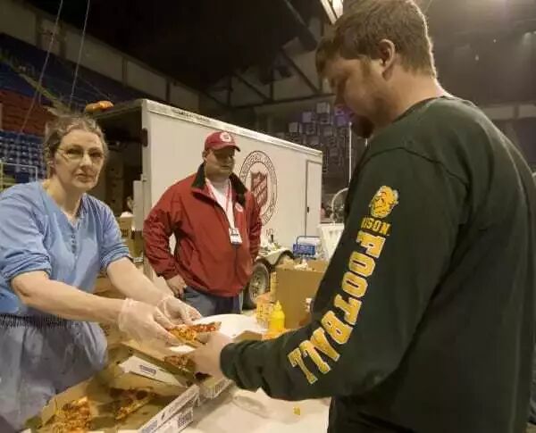 市政厅召集紧急事件小组,计算收容需要的场地面积,食物和水的数量。